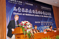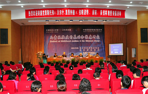 报告会邀请了美国哈佛医学院克里斯托弗 A. 沃尔什教授、里昂纳德 A. 拉帕波特教授主讲儿童孤独症的遗传学研究进展和临床研究进展。沃尔什教授是哈佛医学院神经病学教授、波士顿儿童医院遗传部主任、哈佛-麻省理工医学博士项目主任,曾获得多项美国神经科学院、美国神经学协会的奖励。拉帕波特教授哈佛医学院波士顿儿童医院医学发展中心主任,主要致力于儿童孤独症诊断与治疗研究。讲坛由国家千人计划首批引进人才、美国西北大学神经学教授吴瑛博士做专业翻译,哈佛医学院波士顿儿童医院研究员、基因诊断研究室主任、复旦大学客座教授吴柏林博士同行参与讲坛活动。报告会后,本市专业人员与各位专家进行深入的座谈交流。 孤独症是一类严重的神经发育失调而导致的儿童精神疾病,患病率呈逐年增加趋势,是目前造成儿童精神残疾的首位疾病,2007年美国调查每150个儿童中就有一个罹患孤独症谱系障碍(男童高达1/94),中国0~6岁残疾儿童抽样调查结果,孤独症谱系障碍在0~6岁残疾儿童致残原因中占首位,已超过儿童肿瘤、白血病、艾滋病、糖尿病发生率总和。孤独症患者社会适应不良,甚至生活不能自理,成为社会和家庭巨大的经济和精神负担。孤独症已成为急需关注的全球公共健康问题,2008年,联合国确立每年4月2日为世界孤独症日。美国及欧洲对孤独症病因学、早期诊断与治疗方面的研究起步较早,但国内目前对儿童孤独症的系统调查和临床研究还非常缺乏。本次论坛将有助于医务工作者加深对儿童孤独症认识,指导工作开展,并推动儿童孤独症领域的合作研究。