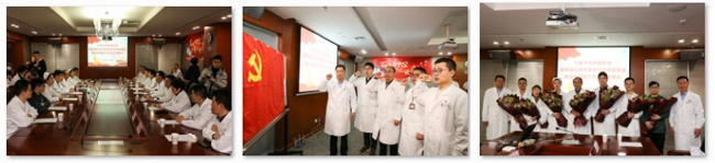 出征誓师会,院党委决定成立援助湖北应对新型冠状病毒感染肺炎疫情江大附院医疗队员临时党支部,由吴小龙同志任党支部书记。临时党支部党员庄重的重温了入党誓词,由党委书记周小金同志领誓。
