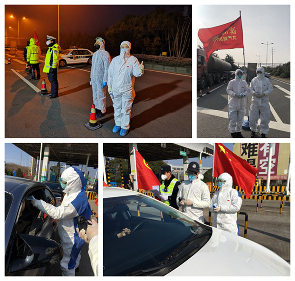 根据滨湖区卫生健康委统一部署,无锡市第九人民医院担负公路入城道口的防疫任务。从年初三起,医院派员值守在陆马公路、342省道阳山服务区等。每天派出8名同志,三班轮岗。天空飘着雨雪、气温降至零度以下,冬日的夜晚尤其难熬,这些挡不住护士天使严谨的工作热情。她们与公安、交通部门的同志密切配合,检测每个入锡车辆上人员的体温,“一个不落下”“一个不遗漏”这是她们的死命令!用自己的辛苦付出,把新冠病毒阻击在锡城外,保障无锡市民的安全。