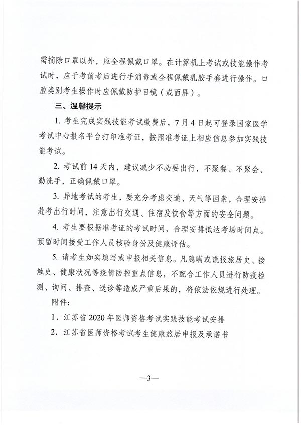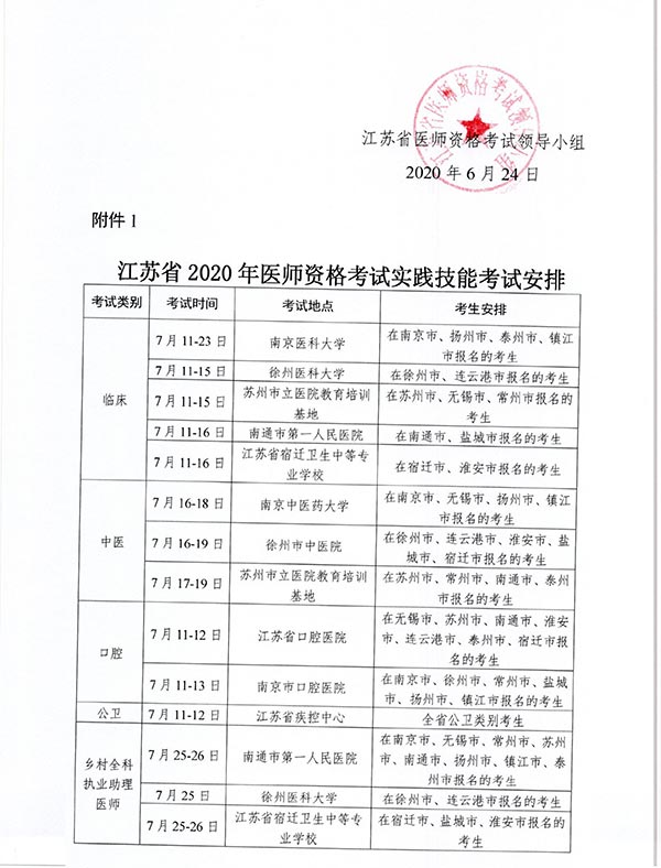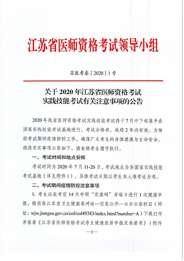 关于2020年江苏省医师资格考试实践技能考试有关注意事项的公告