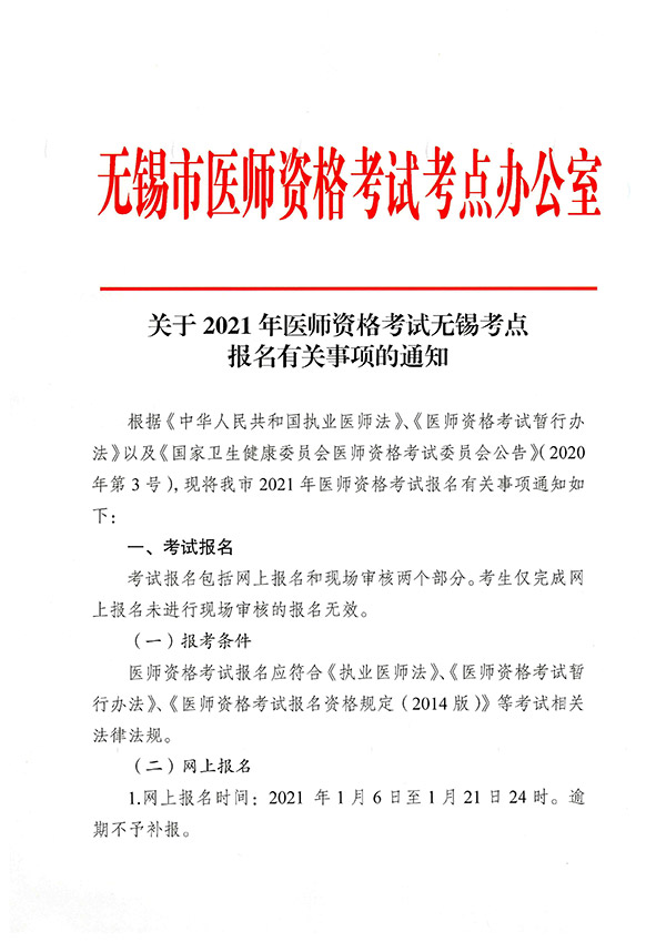 《关于2021年医师资格考试无锡考点报名有关事项的通知》