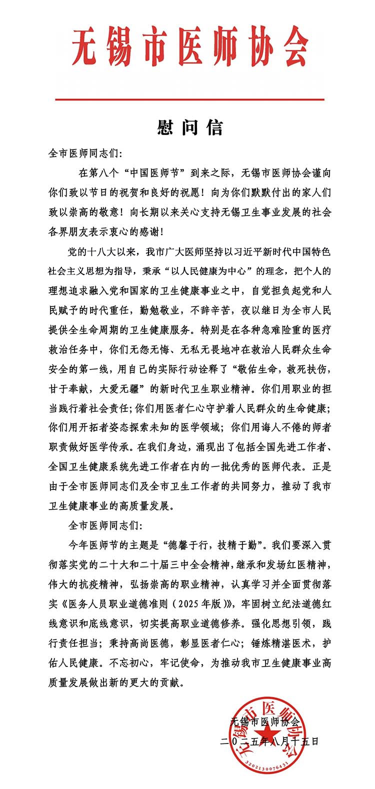 2025医师节慰问信